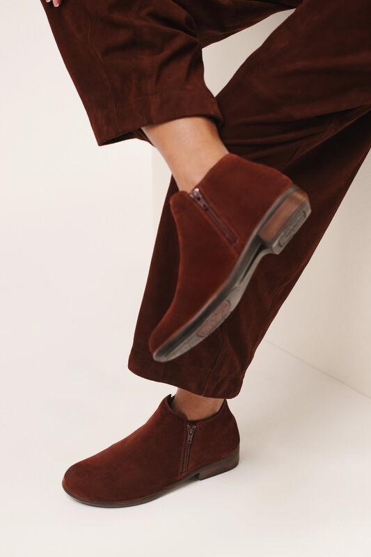 > The footbed is made of natural materials that are shock-resistant and absorb perspiration.
